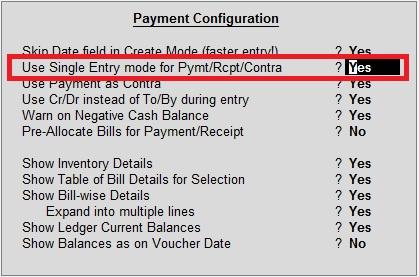 Press F5(Payment Voucher)--> Press F12 (Configuration).
